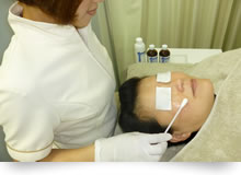 グリコール酸などの「ピーリング剤」と呼ばれる薬剤をお肌に塗布し、治療の目的に合わせた深さで皮膚を剥離・除去する施術です。皮膚の古くなった角質層を取り除き、細胞の新陳代謝を促してくれるので、毛穴を引き締め、しみ・くすみのない透明感のある肌へと導きます。また、にきび・吹き出物を出来にくくしたり、にきびあとを改善する効果、毛穴の黒ずみ(角栓)を取れやすくする効果もあります。施術中に痛みは殆どなく、イオン導入法を組み合わせることで、より一層の効果を実感していただけます。